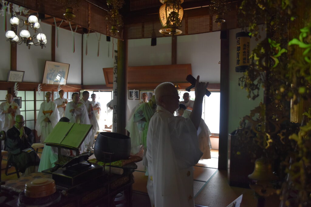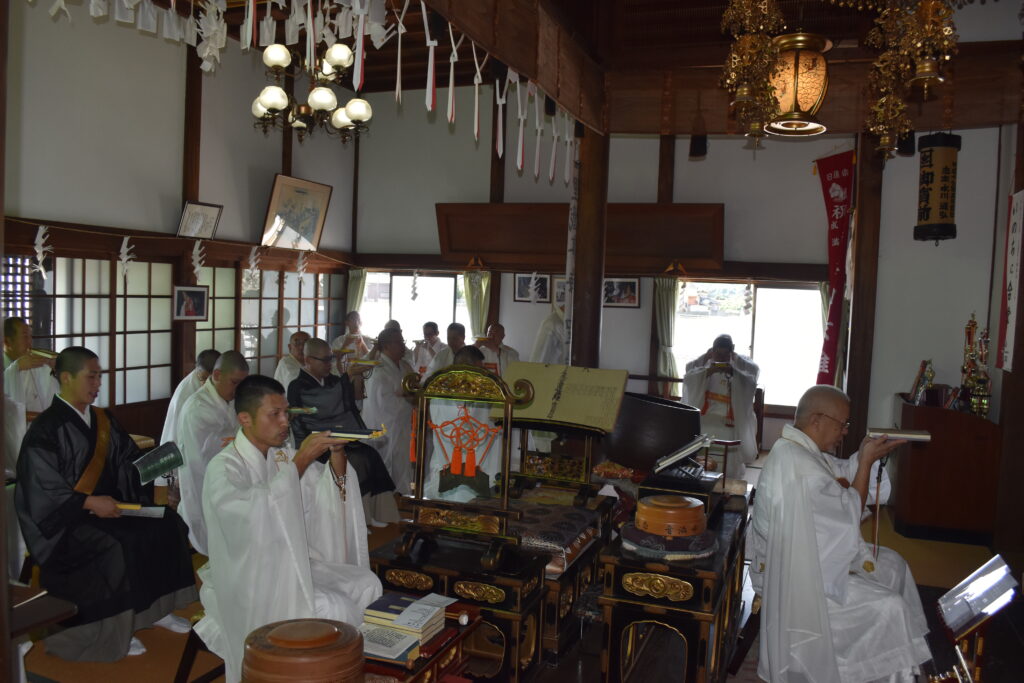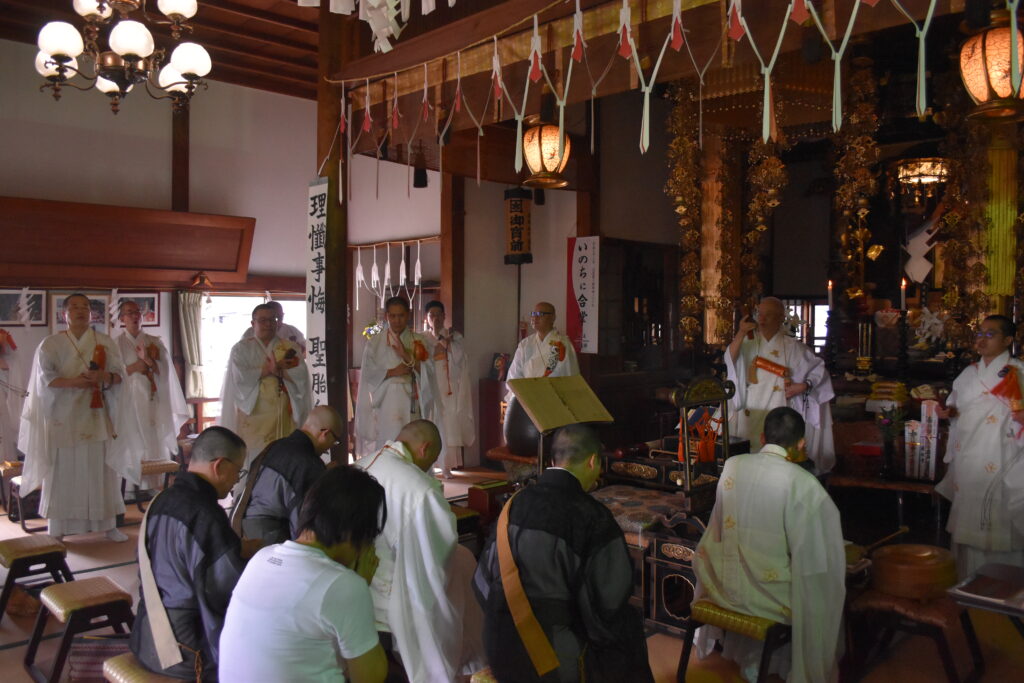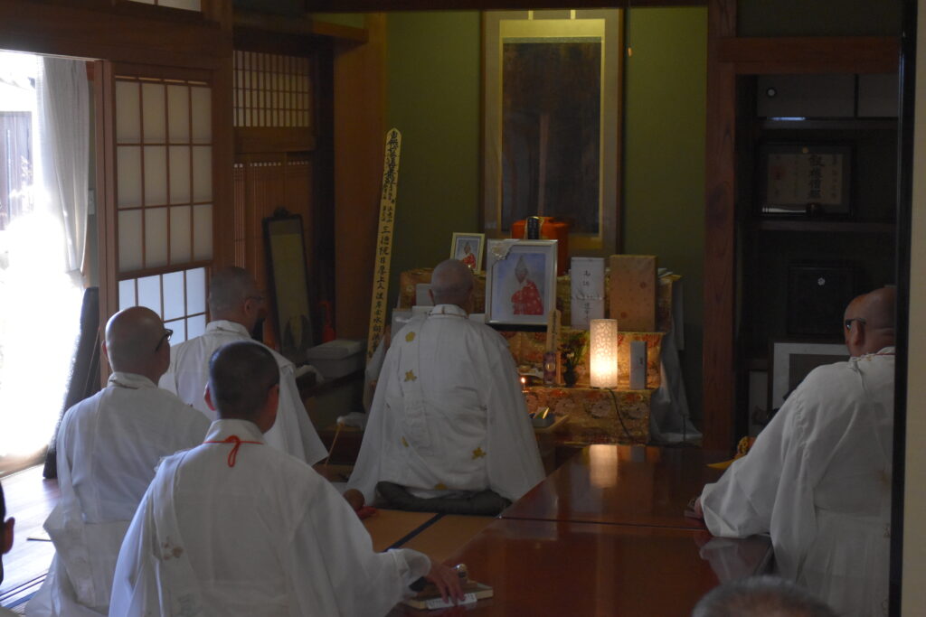 法要終了後は客殿に場所を移し、修法師会一同により、元岡山県宗務所長・蓮休寺先代谷口孝雄上人へのご回向がなされました。