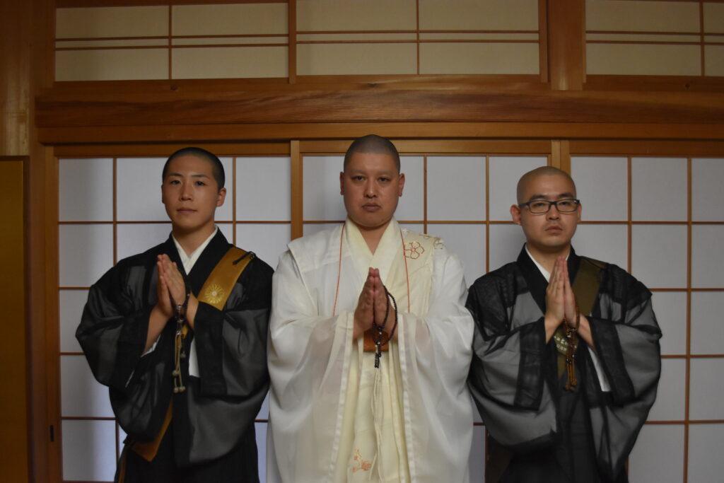 さらに同日夜には、本年度「日蓮宗大荒行堂」に再行として入行される吉備中央町妙仙寺根師龍雅上人、初行として入行される倉敷市本栄寺安井智誠師、岡山市信城寺土居來生師の入行壮行会が開催されました。より良いご修行となり、無事ご成満されますことを心よりご祈念申し上げます。