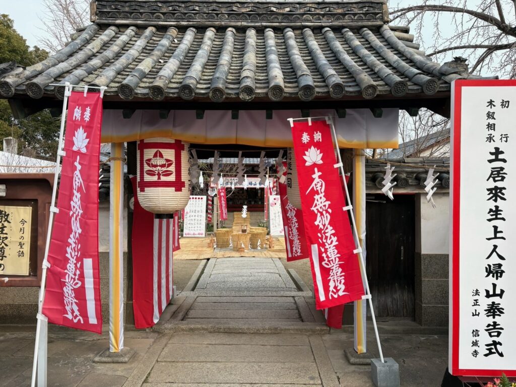 2月16日(月)、日蓮聖人御降誕の聖日にあたり、岡山市庭瀬の信城寺において、初行・土居來生上人の帰山奉告式が厳かに執り行われました。